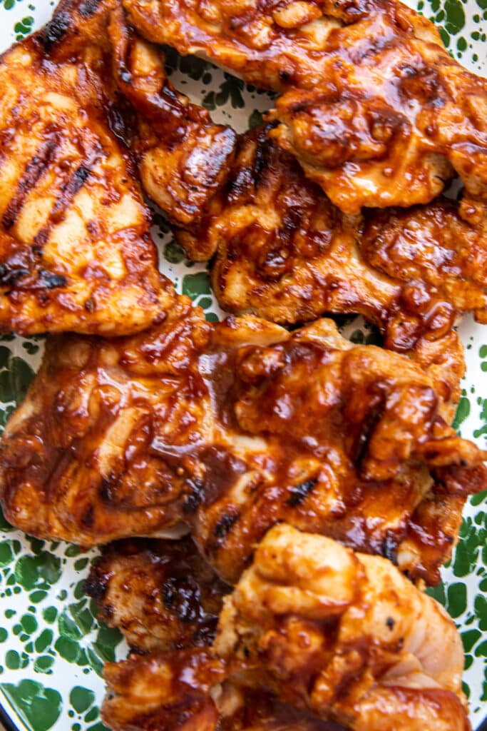 - Brush the BBQ glaze on during the last 2 minutes of cooking, letting it caramelize slightly. Let the chicken rest 5 minutes off the heat before serving. Brush with extra glaze if desired.