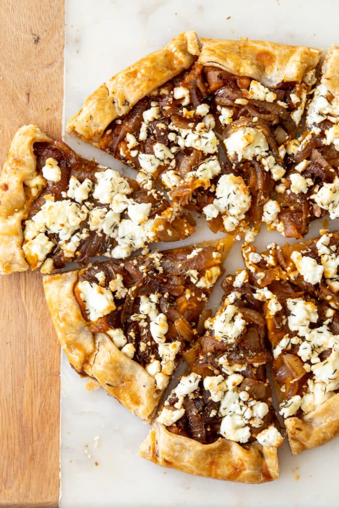 The creamy pumpkin base gets a boost from caramelized onions, warm spices, and crumbled goat cheese, all baked in a rustic galette crust that’s golden and crisp. It’s perfect for a cozy brunch, fall dinner party, or served alongside a bowl of soup.